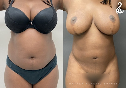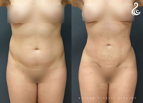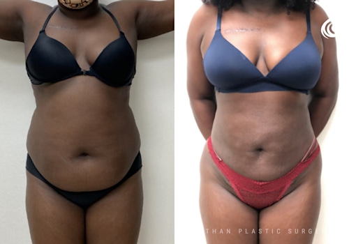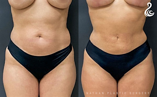 Fat was removed from the stomach, back and flanks to give this patient a carved and flat tummy! Dr. Nathan also used Renuvion Jplasma to tighten the skin, improve elasticity and collagen. We recommend J-Plasma skin tightening for our liposuction patients, for optimal results.