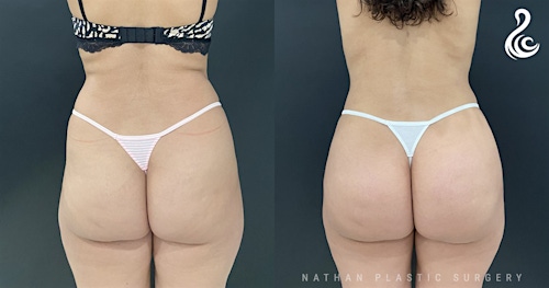 Since the transferred fat integrates with the body’s natural tissue and receives nutrients from blood flow, a significant portion—typically 50-60%—survives long-term, creating lasting, natural-looking results. Additionally, sculpting the surrounding areas with liposuction enhances the overall contour, ensuring smooth, balanced proportions and a beautifully defined silhouette.